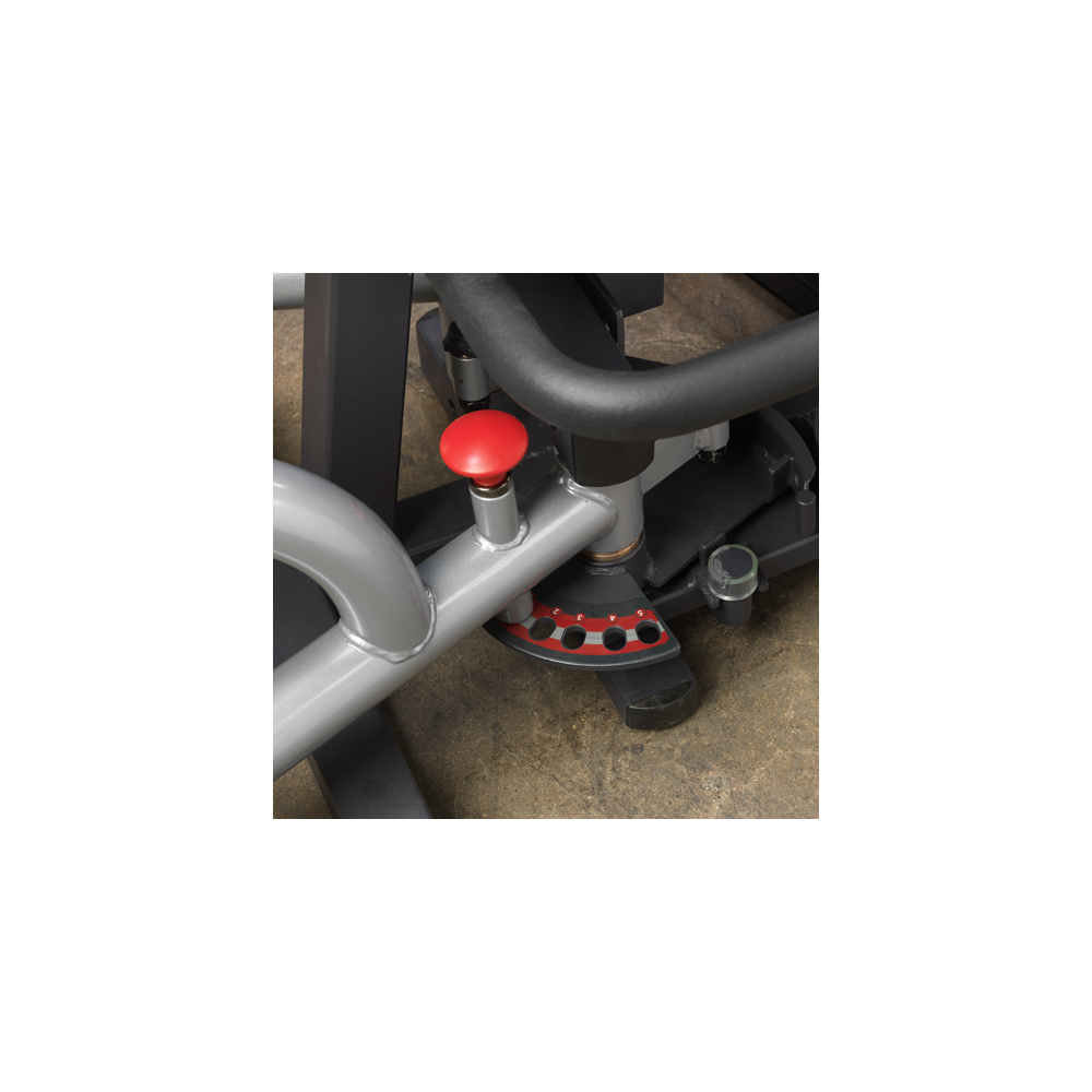 Zaawansowana inżynieria zapewniła wyjątkowy zakres ruchu i pełną regulację dla każdego użytkownika. System ramion prasy z wieloma uchwytami zapewnia głęboką i skuteczną interakcję mięśni podczas ruchów klatki piersiowej, pochyłów i ramion.