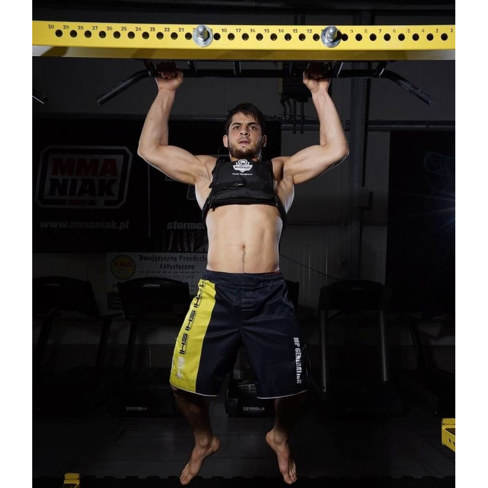 W kamizelce znajduje się 6 wkładów po 3kg kg, dzięki czemu można uzyskać łączną maksymalną masę 18 kg. Pozwala to na dostosowanie wagi do indywidualnych potrzeb i stopnia zaawansowania. Wkłady zabezpieczone są rzepami, które utrzymują je w odpowiednim miejscu.