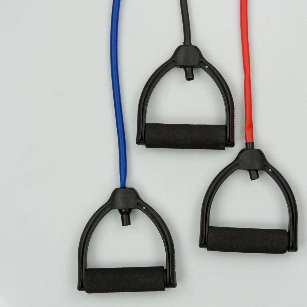Wysokiej jakości odporne gumy treningowe z wygodnymi, zintegrowanymi uchwytami pokrytymi pianką.