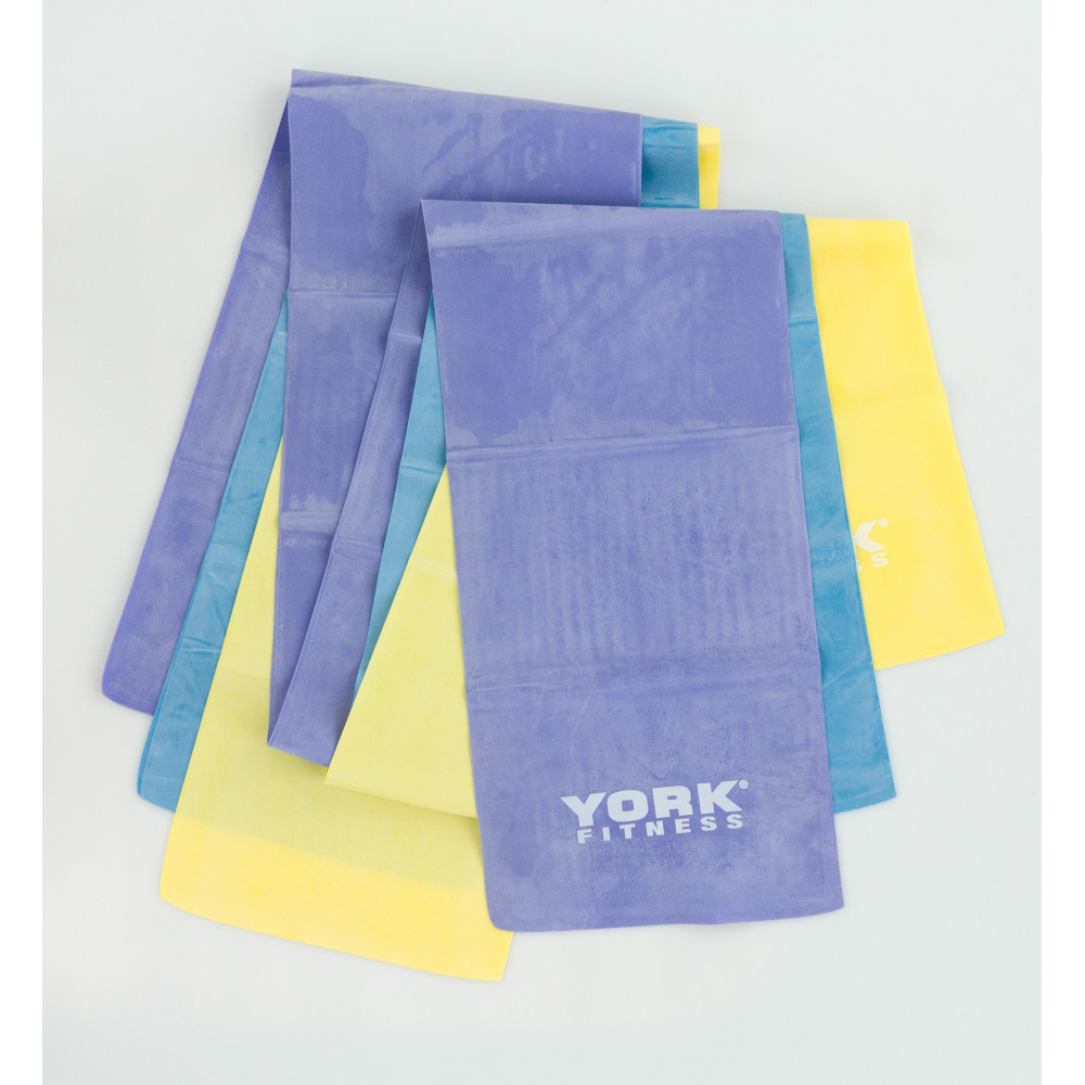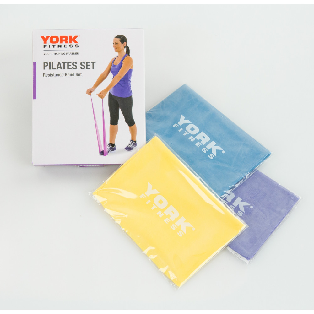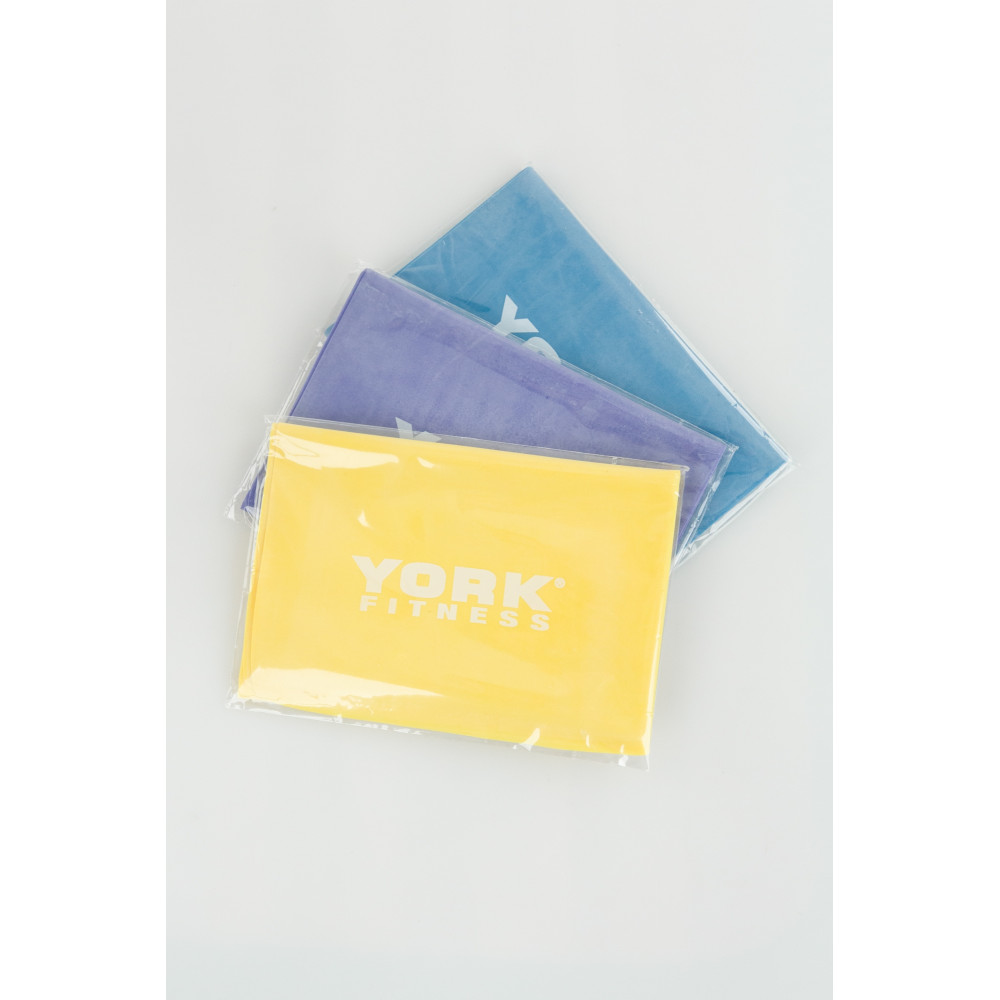 Zestaw York Fitness Resistance Band Set jest idealny do treningu pilates, treningu oporowego, fizjoterapii i treningu mobilności. Zestaw składa się z 3 taśm oporowych o rosnącej sile.
